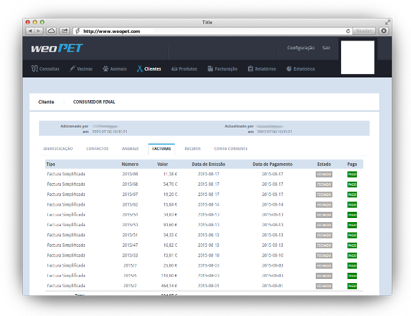 Organize toda a informação dos seus clientes e controle as suas facturas e sua conta corrente