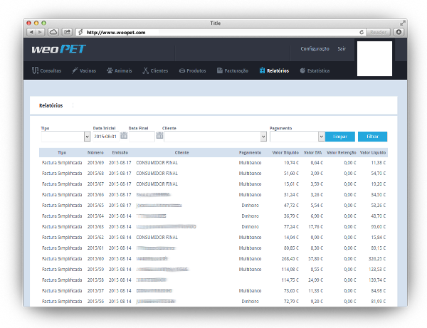 O weoPet permite a gestão integrada de todos os processos da sua clínica veterinária.